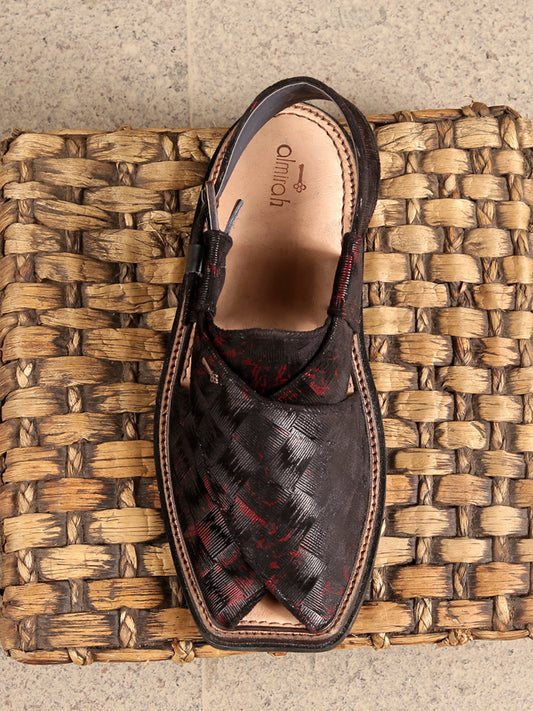 Black & Red Leather Peshawari Chappal - MFW-TFB-011