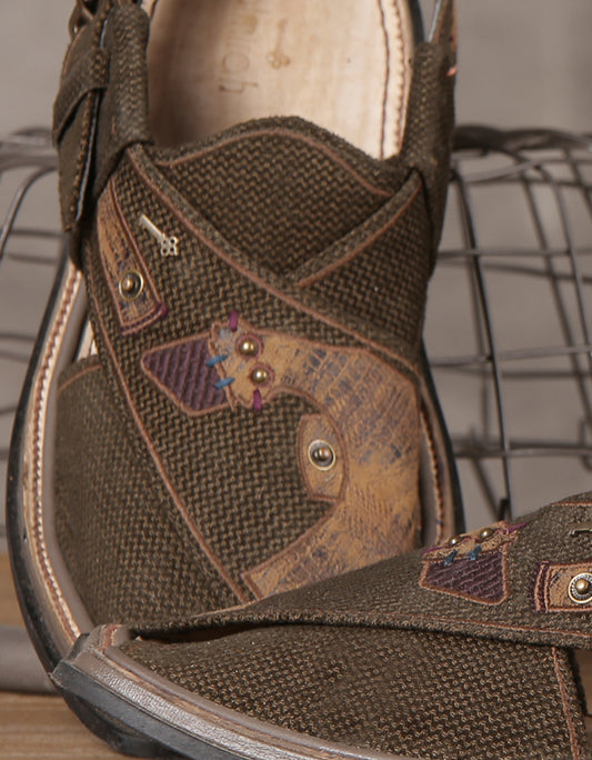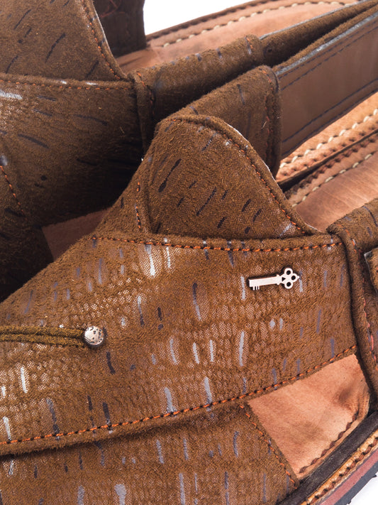 Brown Corduroy Peshawari Chappal - MFW-FB-023