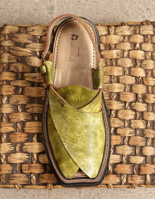 Kahi Green Leather Peshawari Chappal - MFW-FB-012