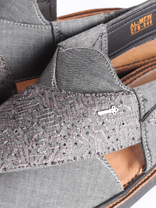 Charcoal Grey Blended Peshawari Chappal - MFW-EFB-046