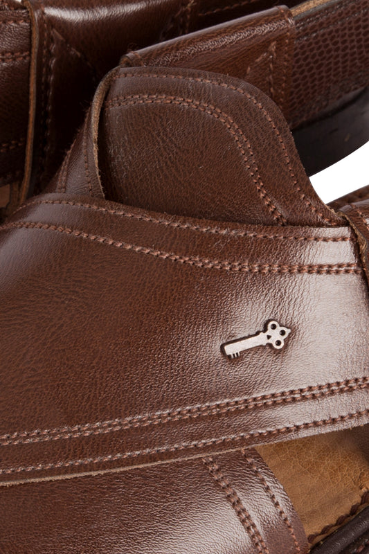 Brown Leather Peshawari Chappal - MFW-HCK-072