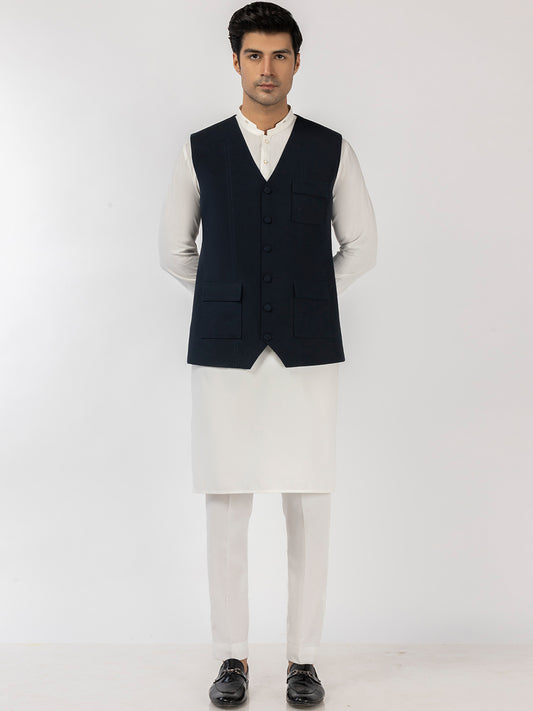 Navy Blue Blended Waistcoat - AL-WC-582