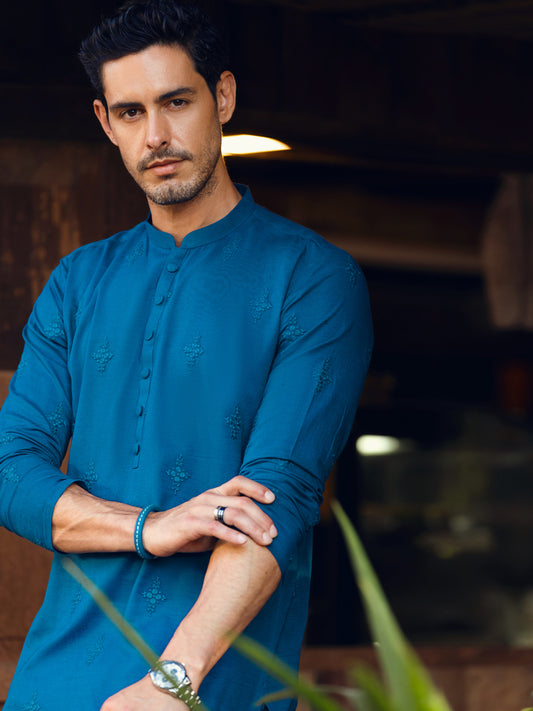 Blue Cotton Semi-Formal Kurta - AL-K-1287