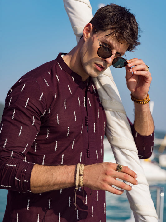 Brown Cotton Semi-Formal Kurta - AL-K-1290