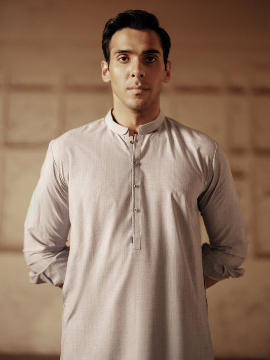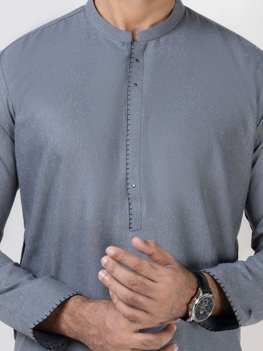 Ash Grey Blended Kameez Shalwar - AL-KS-3077