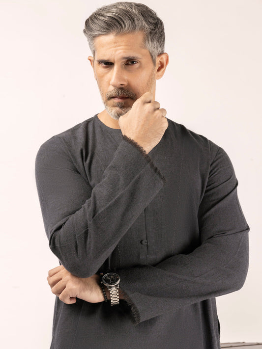 Charcoal Grey Cut & Sew Kameez Shalwar - AL-KS-3313