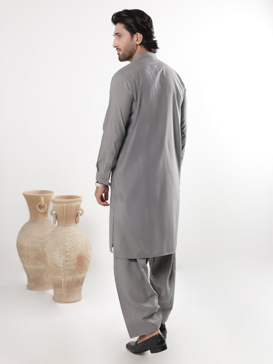 Ash Grey Blended Kameez Shalwar - AL-KS-3233