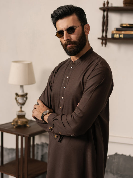 Dark Brown Blended Kameez Shalwar - AL-KS-3186
