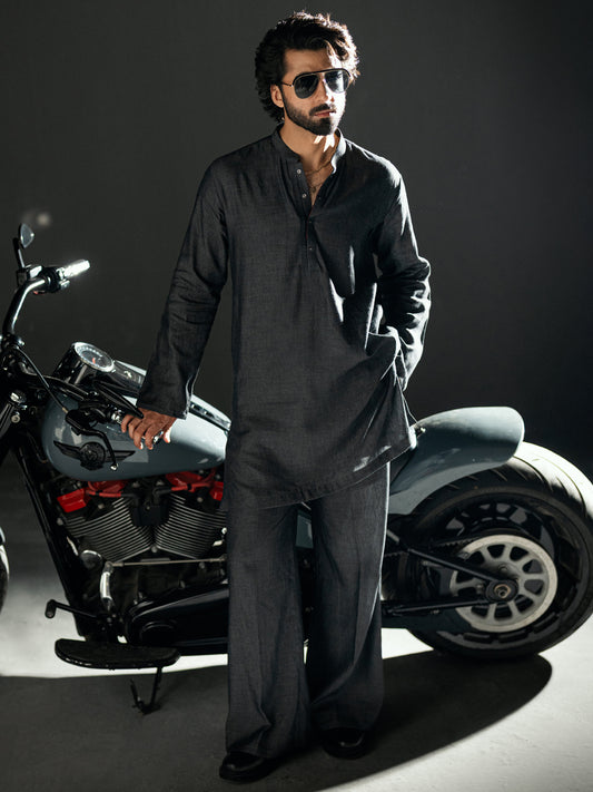Charcoal Denim Kurta Trousers - AL-KT-3264