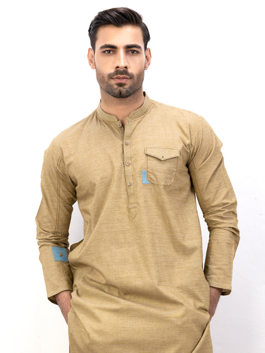 Fawn Blended Formal Kurta - AL-K-SP-035