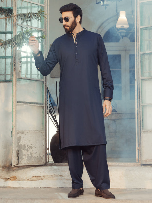 Midnight Blue Plain Kameez Shalwar - ALET-KS-1013-R3