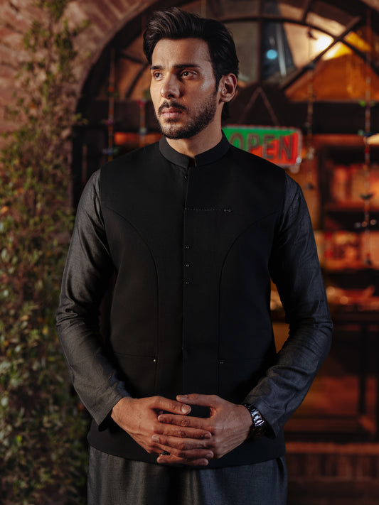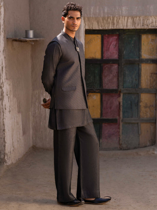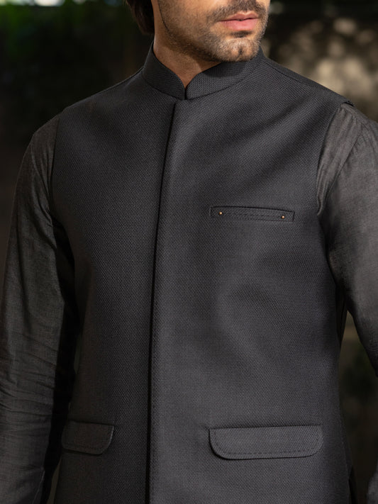 Dark Grey Taflon Rayon Waistcoat - AL-WC-587C