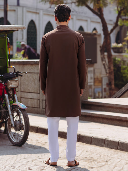 Beige Blended Kameez Shalwar - AL-KS-3206