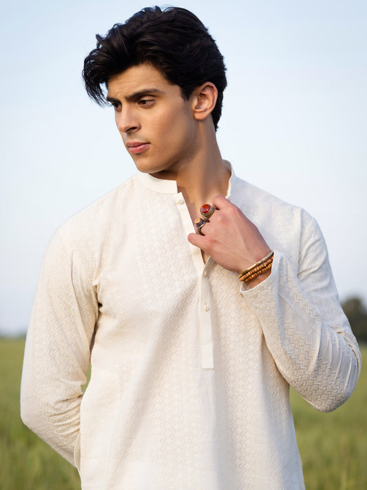 Cream Cotton Kurta - AL-K-1255A