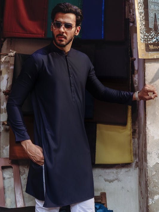 Midnight Blue Blended Kurta - ALET-K-2003