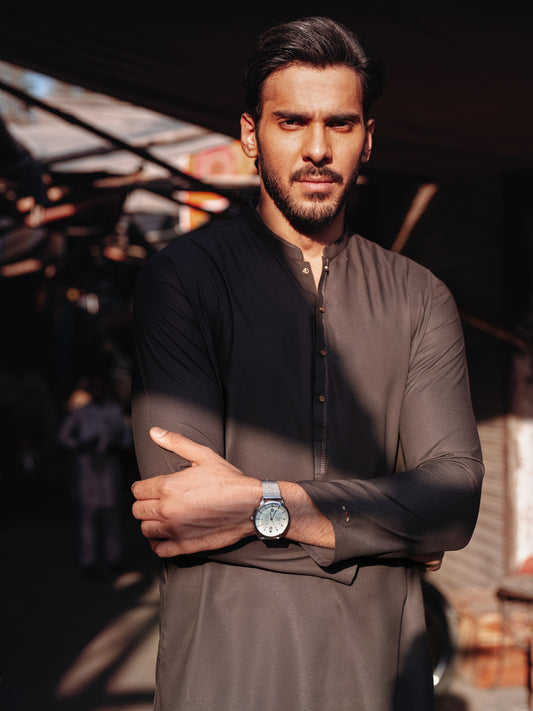 Light Brown Blended Kameez Shalwar - AL-KS-3095