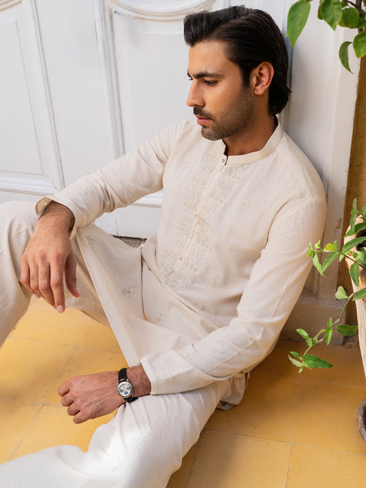 Cream Blended Formal Kurta - AL-K-SP-062