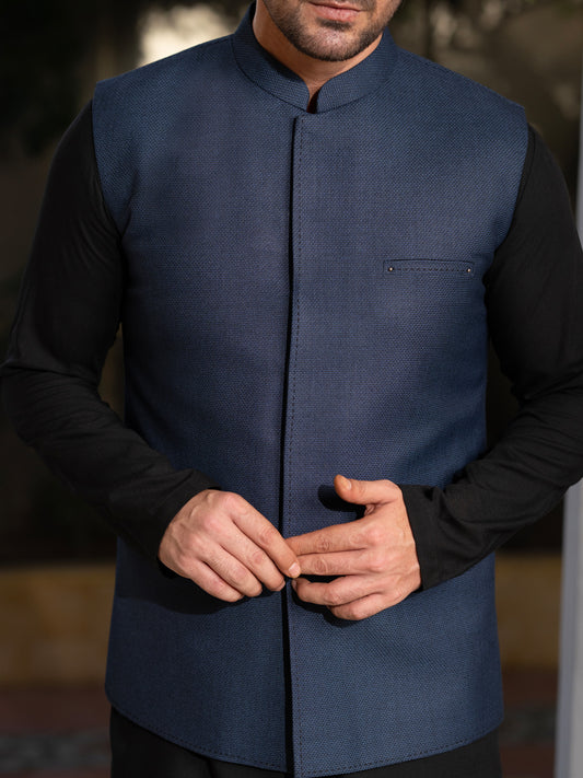 Navy Blue Blended Waistcoat - AL-WC-587B
