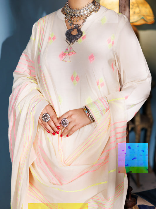 Off White Yarn Dyed Jacquard 3Pc Unstitched - ALP-3PS-1886