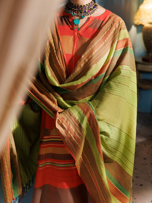 Orange Yarn Dyed 3Pc Stitched - ALP-3PS-1888