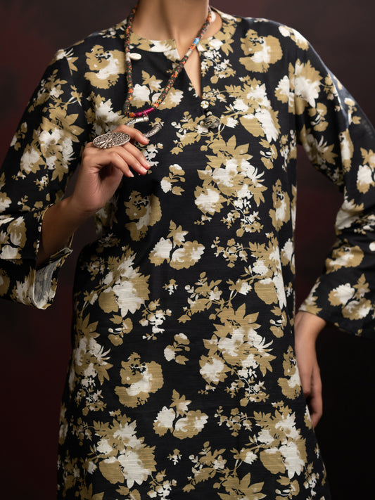Black Slub Khaddar 2Pc Stitched - AL-2PS-LKS-1095