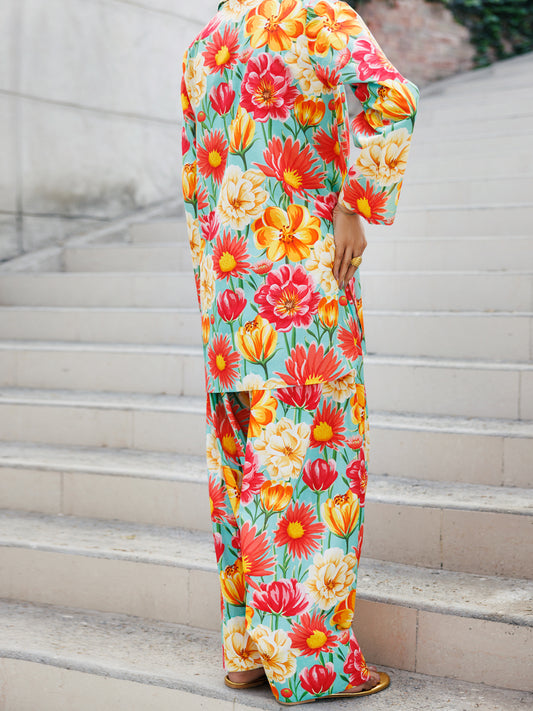 Multicolor Lawn Co-ord Set - ALP-2PS-SLKS-2240