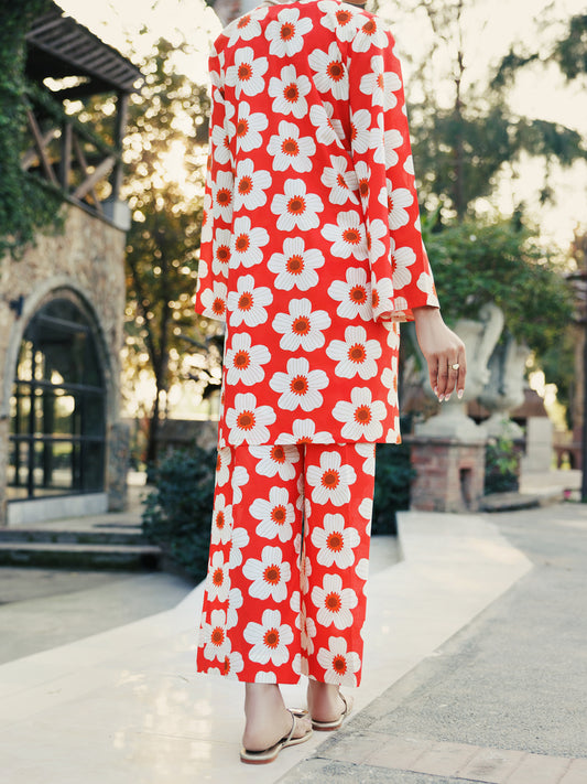 Red Lawn Co-ord Set - ALP-2PS-SLKS-2247