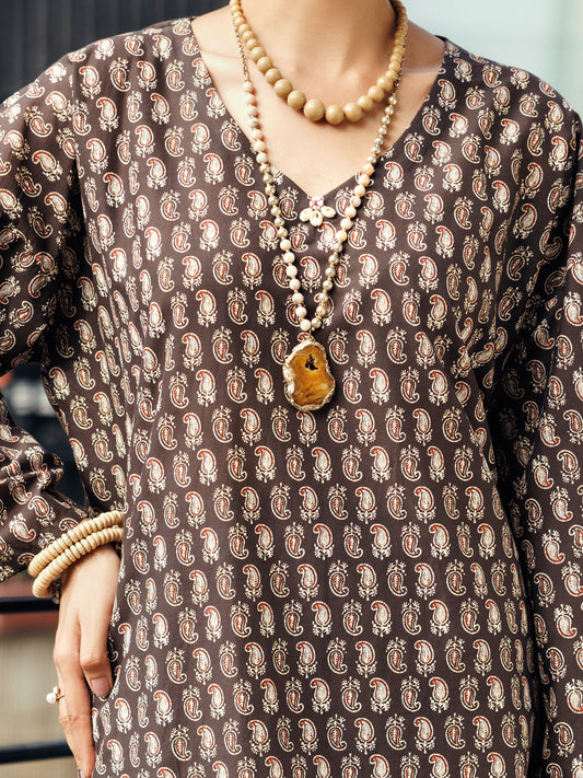 Brown Lawn Co-ord Set - ALP-2PS-SLKS-2250