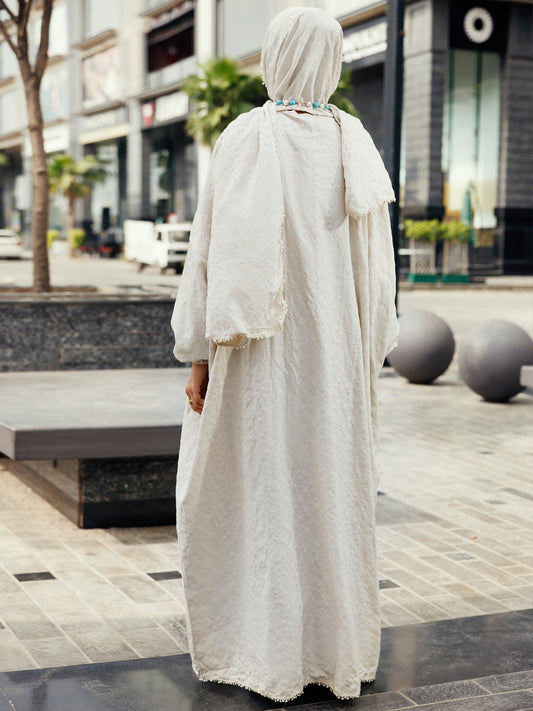 Off White Dobby Silk Salah Robe - AL-LK-PD-1073