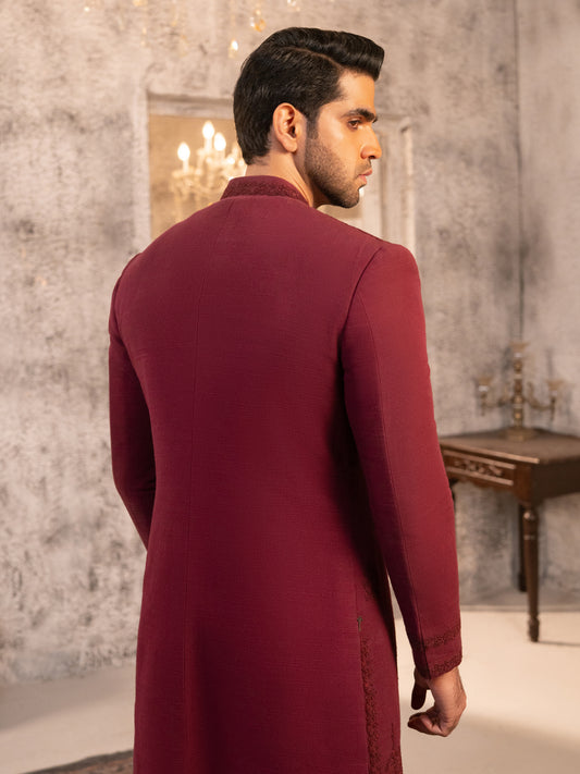 Maroon Cotton Sherwani - AL-SW-153