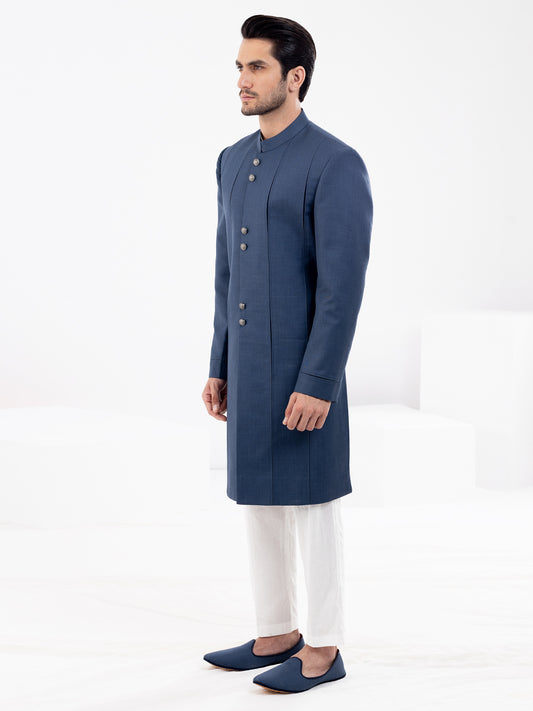 Dark Blue Blended Men Sherwani - AL-SW-149