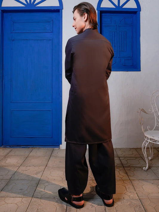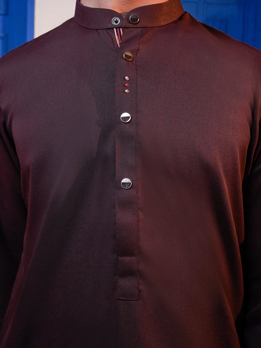 Brown Blended Kameez Shalwar - ALTET-KS-005-R1
