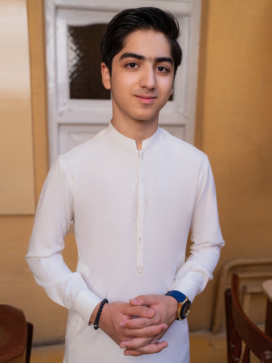 White Blended Kameez Shalwar - ALTET-KS-001-R2