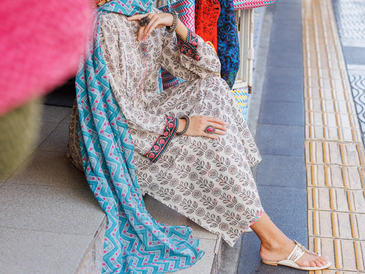 Off White Lawn 3Pc Stitched - ALP-3PS-804