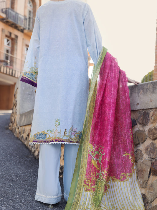 Sky Blue Lawn 3Pc Unstitched - ALP-3PS-1731