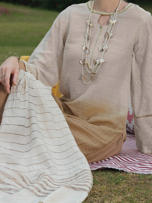 Beige Schiffli Lawn 3Pc Stitched - ALP-3PS-828