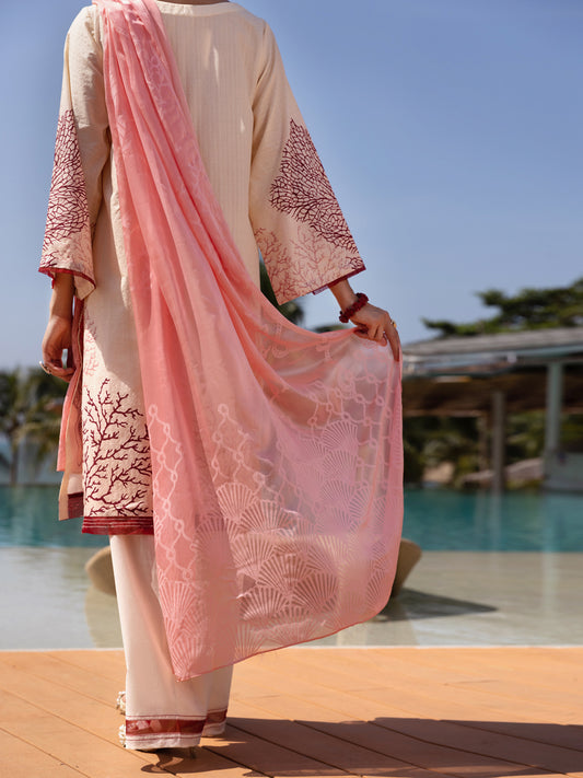Cream Lawn Co-ord Set - ALP-2PS-SLKS-2069