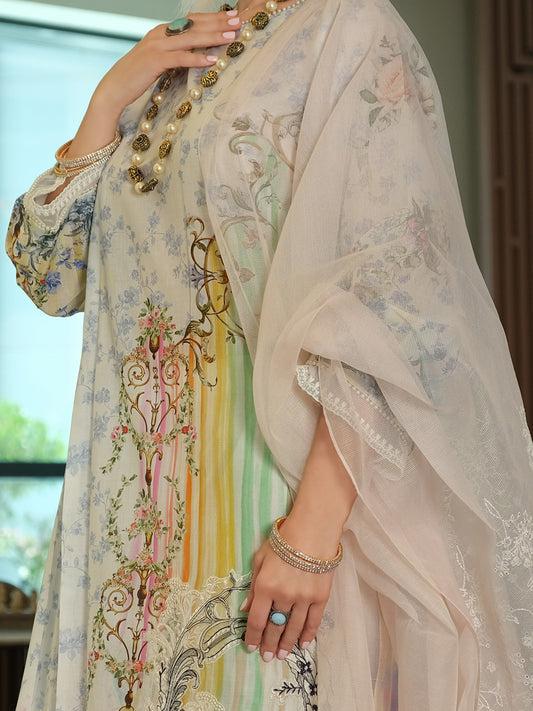 Beige Lawn 3Pc Stitched - ALP-3PS-884