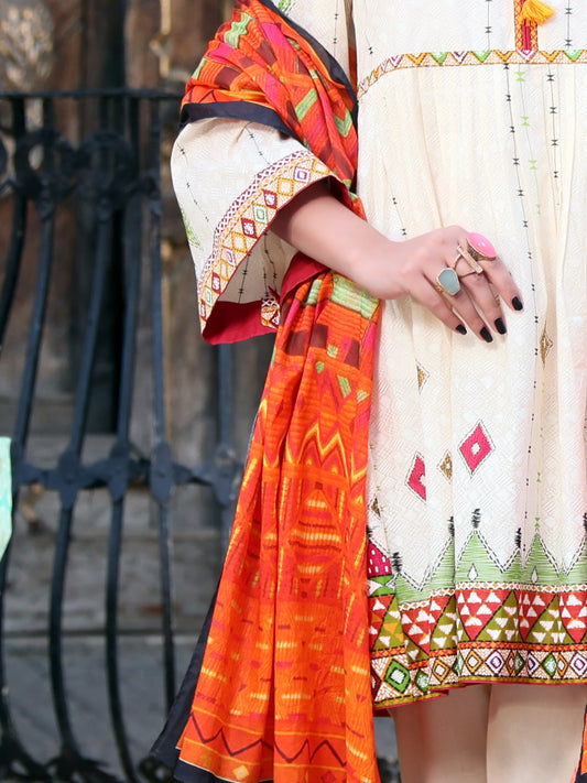 Off White Lawn 3Pc Stitched - ALP-3PS-1117