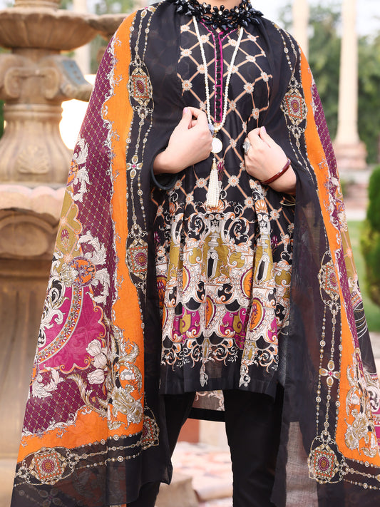 Black Lawn 3Pc Stitched - ALP-3PS-1243