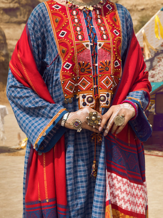 Blue Yarn-Dyed 3Pc Stitched - AWP-3PS-311