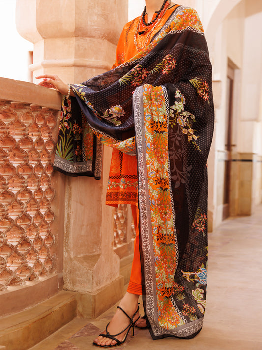 Orange Lawn 3Pc Stitched - ALP-3PS-1973