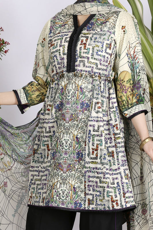 Off White Lawn 3Pc Stitched - ALP-719