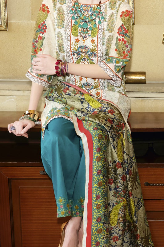 Off White Lawn 3Pc Stitched - ALP-672