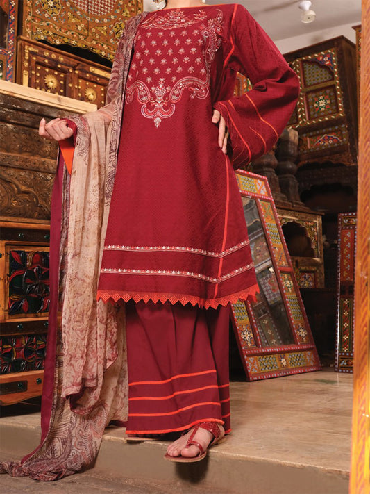 Maroon Lawn 3Pc Stitched - ALP-739