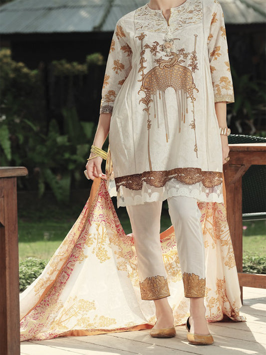 Beige Lawn 3Pc Stitched - AWP-3PS-863