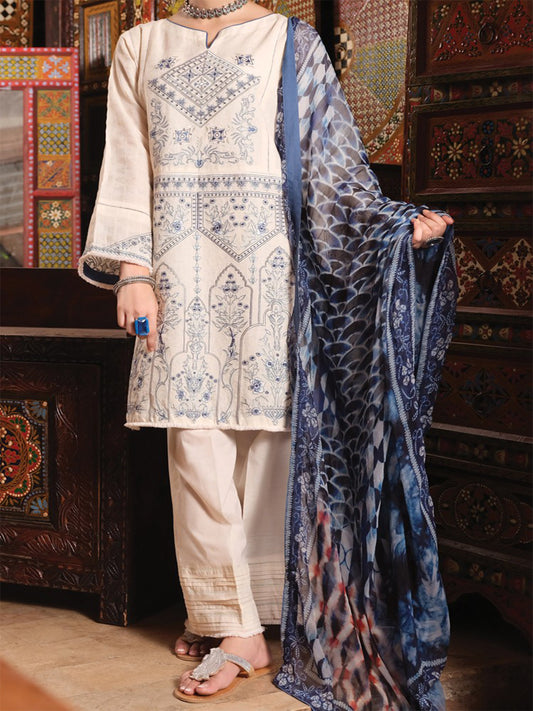 Off White Lawn Formal 3Pc Stitched - ALGR-3PS-LS-039
