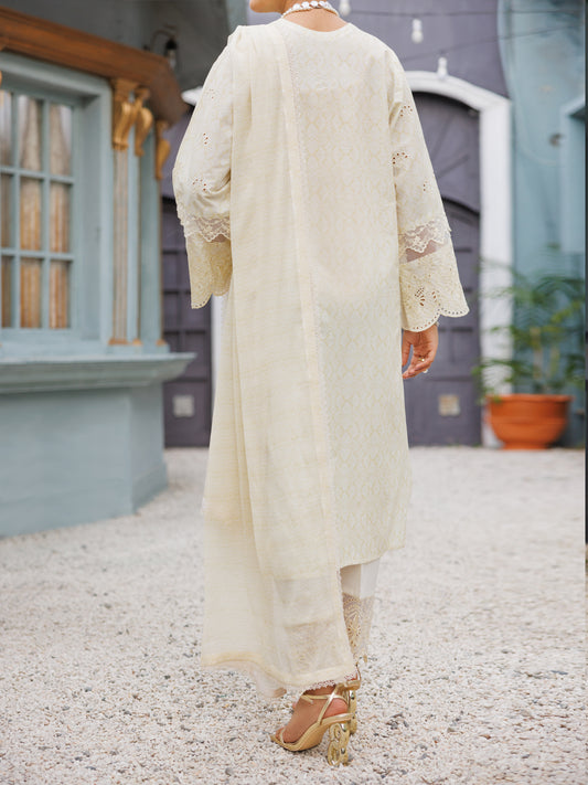 Off White Schiffli Lawn 3Pc Stitched - ALP-3PS-2273