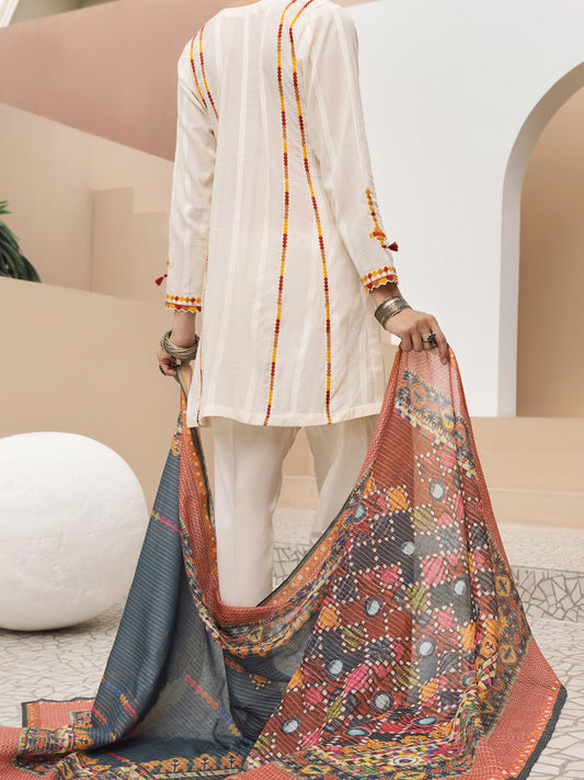 Off White Lawn 3Pc Stitched - ALP-3PS-804