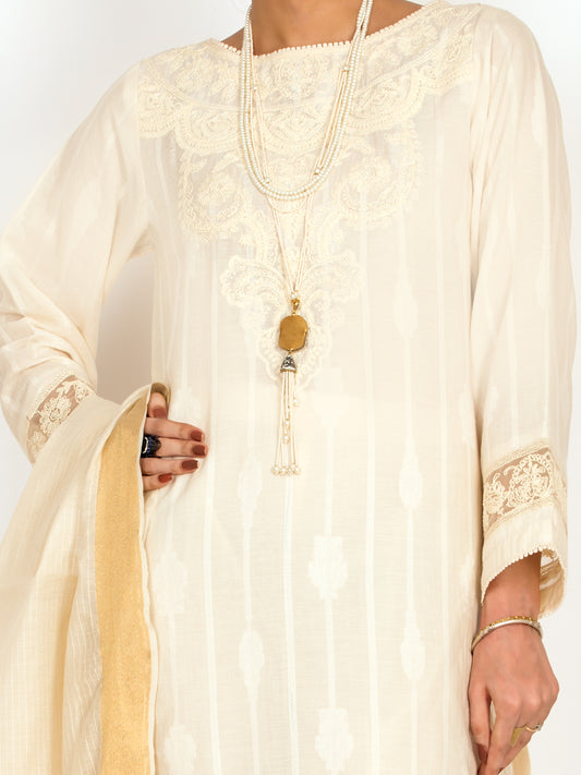 Off White Yarn-Dyed Jacquard 3Pc Stitched - ALP-3PS-1094